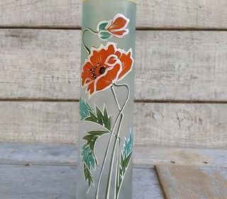 Ancien Vase Verre Émaillé Décor Fleurs Pavot Style Legras Hauteur 22cm, largeur col 5,5cm, base 6,8cm Bon état, nettoyage à parfaire