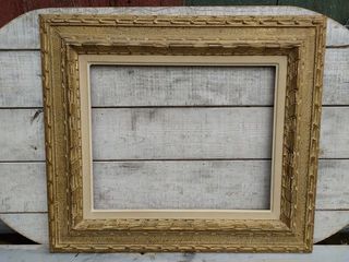 Petit Cadre Barbizon Doré Bois et Stuc XIXème REF414 Dimensions extérieures : 26cm x 20,5cm. Dimensions à vue : 39,5cm x 25,5cm Dimensions de la Feuillure : 16,5cm x 11,1