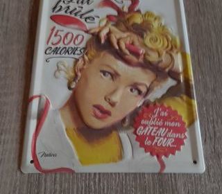 Plaque en métal rétro vintage, pour décoration, de la marque originale "Natives", modèle "1 500 calories", avec l'inscription "J'ai brulé 1500 CALORIES ! j'ai oublié mon gâteau