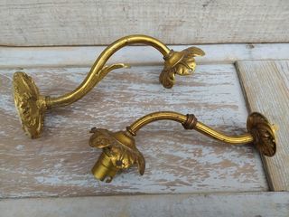 Anciennes Appliques Bronze Doré Tulipe Lampe Longueur 22,5cm et 18cm. Très bon état, belle qualité de ciselure. A compléter et à électrifier Peuvent être vendues à l'un