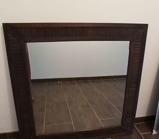 Miroir 1m x 1m contour bois à vendre. Paiement en espèces uniquement.