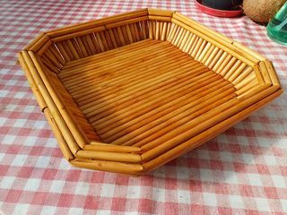 Corbeille à fruits ou autre en Osier Dimensions: Carré de 30,5cm de côtés, Diagonale de 36cm et Hauteur de 7cm FAIRE OFFRE RAISONNABLE Pas de paiement par Paypal ou Paylib