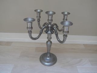 Chandelier en étain à 5 bougies Grand chandelier à 4 branches et 5 bougies Chandelier ou candélabre, quand un chandelier à pied comporte plusieurs branches, on peut le nommer can