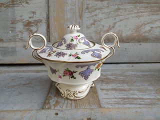Ancien Vase Faïence Blanche Oie Volant le Gouter d'un Enfant Pas de marque, ni signature. Largeur 16cm, hauteur 18cm, profondeur 15cm. Bon état général, accidents au nive