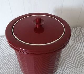 SEAU A GLACONS DE MARQUE TUPPERWARE AUX DIMENSIONS DE 21 CENTIMETRES DE HAUTEUR ET DE 20 CENTIMETRES DE DIAMETRE DE COULEUR ROUGE. ETAT NEUF.