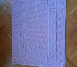 Lot de 2 serviettes, en 100 % coton, l'une de couleur grise, dimensions 84,5 cm x 46,5 cm, l'autre noire brodée à l'effigie d'une course de Touraine, dimensions 96 cm x 48,5 cm.