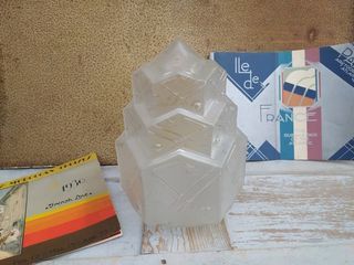 Ancien Globe Verre Art Déco Tiany Building Skyscraper Hauteur 25,5cm, largeur 19cm x 16,5cm. Diamètre de la prise 10cm. Très bon état, petits éclats sur la prise