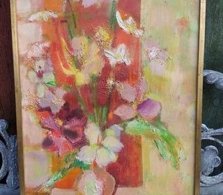 Tableau Bouquet de Fleurs Peinture à l'Huile Signé Vincent Tableau Bouquet de Fleurs Signé Vincent (Lucille) Huile sur Papier Format à vue 73cm x 49cm Bon état