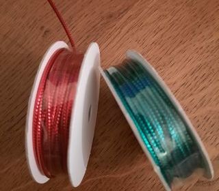 LOT DE 2 BOBINES POUR DECORATION. UNE ROUGE ET UNE VERTE. LONGUEUR 5 M PAR 2 MILLIMETRES DE DIAMETRE. LE PRIX EST POUR LES 2.