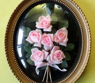 Grand cadre verre bombé roses artificielles cadre en plastique verre bombé véritable 27.5 cm x 23 cm épaisseur du cadre 2 cm TBE Envoi possible RMP métro Corentin Celton