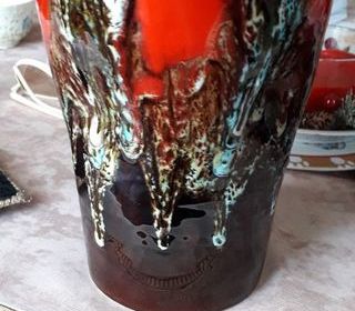 VASE VALLAURIS SIGNE HAUTEUR 25CM TONS ROUGE/MARRON/BLANC EN PARFAIT ETAT ET SIGNE