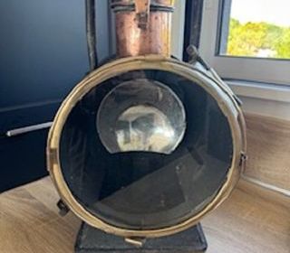 Ancienne lampe SNCF Etat correct , un élément du hublot à resouder peut être montée en lampe Cuivre, laiton et fonte hauteur 55 cm largeur 21 cm Pas de livraison, à prendre sur