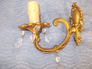 2 appliques murales regency en bronze couleur or vieilli avec pampilles,pour ampoule e14 de 60w. maximum,ampoules non fournis les deux 80euros
