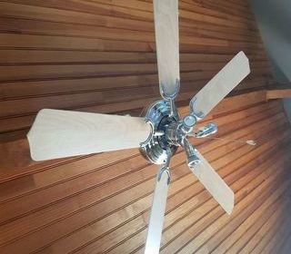 Ventilateur de plafond 60W 5 pales ( couleur beiges ou blanches ) plusieurs vitesses fonction été / hiver 3 lampes x MAX 50W GU10 Lampes fournies