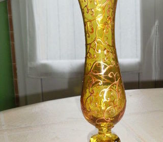 SOLIFLORE en VERRE, couleur jaune Or - NEUF - à offrir * Fait main * Haut. Totale 26,5 cm * diamètre du haut du vase 6,5 cm * diamètre du socle 8 cm ENVOI possible à vos