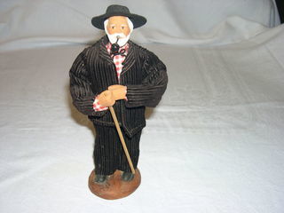 Santon de Provence DEVILLAINE Hauteur 24 cm - Poids : 350 g Vieil homme à la pipe tenant un bâton. Vêtement velours marron Terre cuite