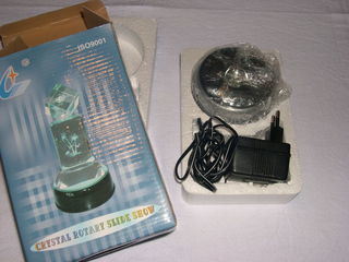 Socle miroir tournant à led (4 couleurs) pour mettre en valeur les objets translucides, pierres, etc. Bouton marche/arrêt Hauteur : 4,2cm - diamètre : 8cm Prise secteur fourni