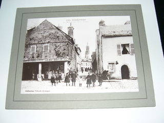 Photo sur cadre - n°5321 - Landerneau - La maison des Trois Piliers - dimension 30 cm x 24 cm - épaisseur 1 cm - couleur noir et blanc - Collection Villard, Quimper - tâches sur le