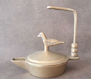lampe à huile en laiton surmontée d'un oiseau parfait état, aucune déformation ou choc hauteur 10 cm diamètre 7 cm