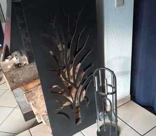 Magnifique bûcher en acier fabrication artisanale de très belle facture dimension: Hauteur 124cm, profondeur 52 cm largeur 28 cm donne avec le serviteur