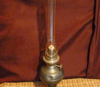 Lampe à pétrole ancienne . Bon état . La roulette pour la mèche fonctionne. Etain bryard 95 % Antimoine 5%. Hauteur totale 42 cm ( le tube fait 23 cm ) Prix 15€