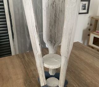Vends Décoration en bois " Joutes de Sète " - Couleur blanc / bleu - Dimensions hauteur 51 cm diamètre 24 cm - Très bon état - Prix 25 euros