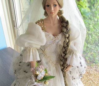 Poupée porcelaine rapunzel , certificat d'authenticité fourni , vendu avec le socle , 230 euros FERME , envoi possible pour 6.90 euros en point relais , réglement par chéque , pas