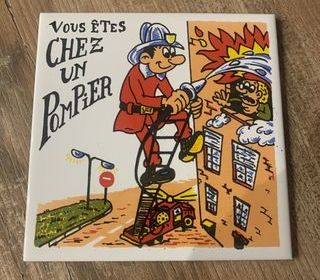 Vends Carreaux décoratif \'\' Vous êtes chez un pompier \'\' - Dimensions 15 / 15 cm - à‰tat neuf - Prix 6 euros