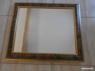 MIROIR CADRE PEINT FLORAL AVEC CONTOUR DORE Dimension 67X 58 a récupéré sur place