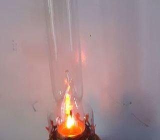 Lampe à pétrole ancienne en laiton, avec cheminée en verre. Electrifier avec ampoule flamma Objet authentique au style rétro, parfaite en lampe décorative ou pour collection.