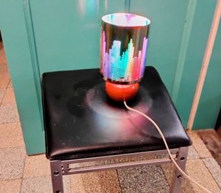 lanterne décoration de Noël façon boule à neige à paillette il y a un bouton on/off en dessous pour de la musique ou de la lumière peut-être mais il faut changer la pile an
