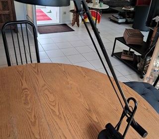 Lampe de bureau halogène à double balancier Stilplast vintage Son bras ressemble à une grue avec un accent en forme de levier qui permet de contrôler la hauteur de l'abat-jour. D