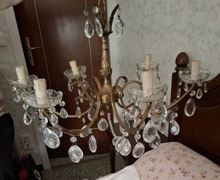 Lustre bronze à pampilles 6 branches en très bon état.