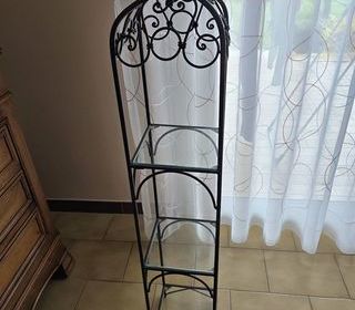 console en fer forgé et verre très bon état hauteur 1.24 carrés 0.22x0.22 en verre A retirer sur place car pas d'envoi