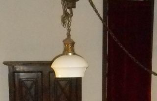 Opaline blanche très bon état. Vintage 1960 Forme demi-globe avec sa fixation en laiton ouvragée. Dimensions: hauteur 35 cm / diamètre base 23 cm / niveau bombé 30 cm poids 1kg