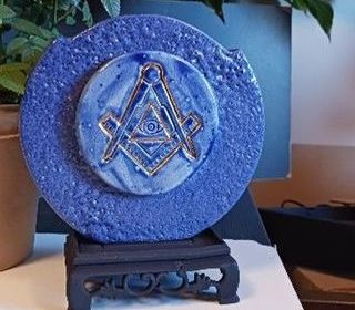 vase céramique artisanal, effigie boussole Franc- Maçonnique ! dia: 15 cm