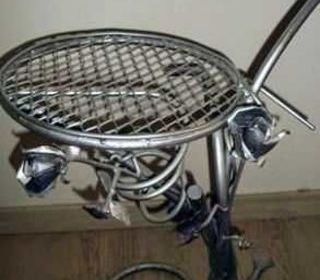jolie table basse d'appoint Fer forgé couleur argent modèle unique d'artiste. H 1.20.lar 35 cm. L 35 cm.