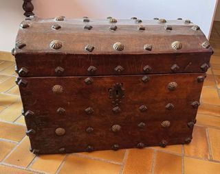 Coffre en bois, recouvert de cuir, bon état : L : 70cm. l : 40 cm H :50cm
