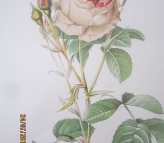 Lithographie - Roses de Redoute Encadrement rouge - doré Biseau simulé : lignes (5) de différentes épaisseurs et de couleurs différentes Eddition- Merlot (Paris) dimension