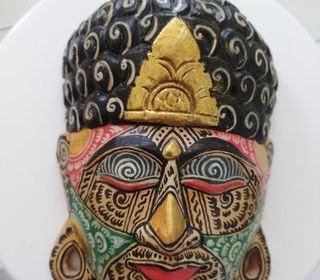Beau masque décoratif en bois, peint. Artisanal. Excellent état. Hauteur 24cm, largeur 16cm, épaisseur 8cm. Faire une offre.