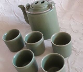 Théière en provenance de Chine et ses 5 tasses Couleur Celadon