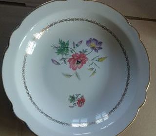 ENSEMBLE VAISSELLE 50 PIECES " LUNEVILLE BADONVILLER KG ", bon état général, motifs fleurs champêtre et dorures comprenant : - 24 assiettes plates ; - 12 assiettes à dessert ; -