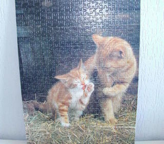 PUZZLE maman chat et son chaton - 500 pièces collé sur bois - 48 cm x 34 cm x 1,5 cm très bon état - 8€