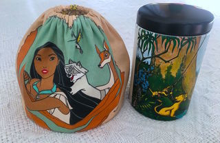 Abat jour Pocahontas + boite Le Roi Lion. Pour lampe sur pied (chevet ou bureau). Cadeau offert : boite en fer cylindrique " Le Roi Lion " (H :17 cm / Diam 11 cm). Sur place ou