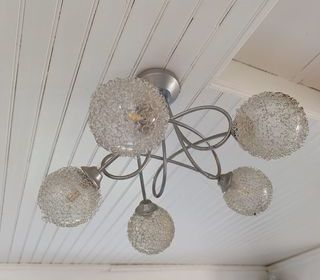 lot de 2 lustres en fer. 1 applique avec 5 boules en verre grillagé 1boule en fer (possibilité de réglage de la hauteur. +offre 2 ampoules led pour l'applique