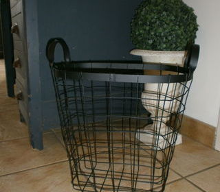 Jolie corbeille style fil de fer, pour une déco atelier ou industrielle. Très bon état. Hauteur avec les poignées : 38cm Longueur : 33cm