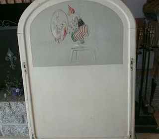 Ancienne tête de lit enfant, très belle peinture sur le thème du cirque. Largeur : 63cm Hauteur avec les pieds : 1m