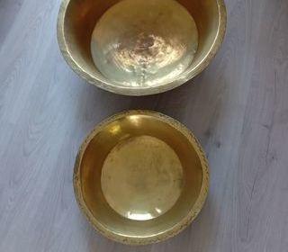 Je vends ce lot de bassines en cuivre. L'une fait 38,5 cm de diamètre et l'autre 54 cm. Elles sont à vendre ensemble ou séparément. 100 euros les 2