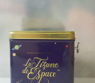 Boîte musicale en métal à thé. Avec remontoir mécanique NEUVE et vide.
