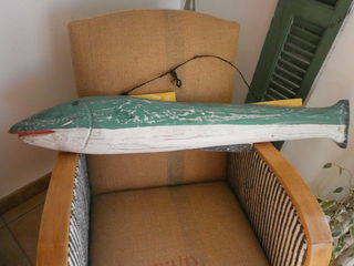Gros poisson déco (blanc, vert, noir, jaune et rouge). Longueur : 1,02m